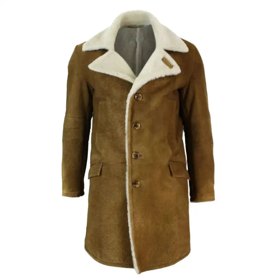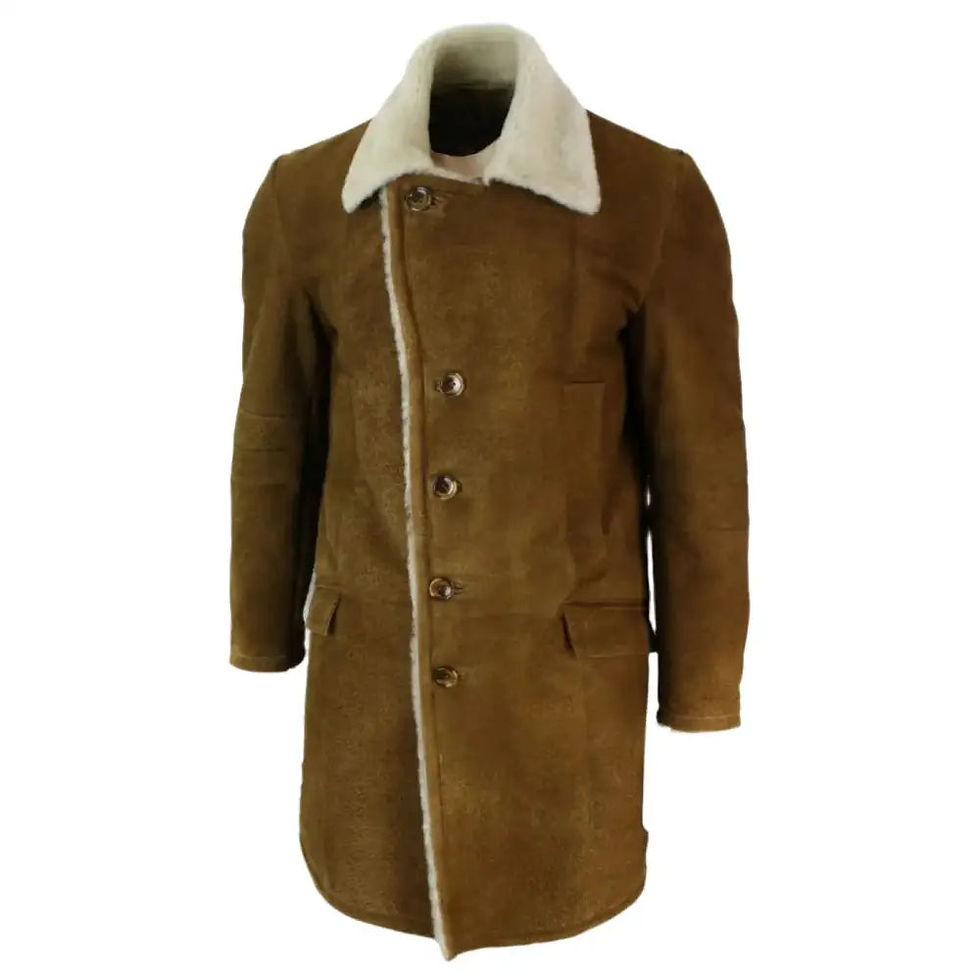 Men’s Vintage Tan Brown Shearling Sheepskin Overcoat
